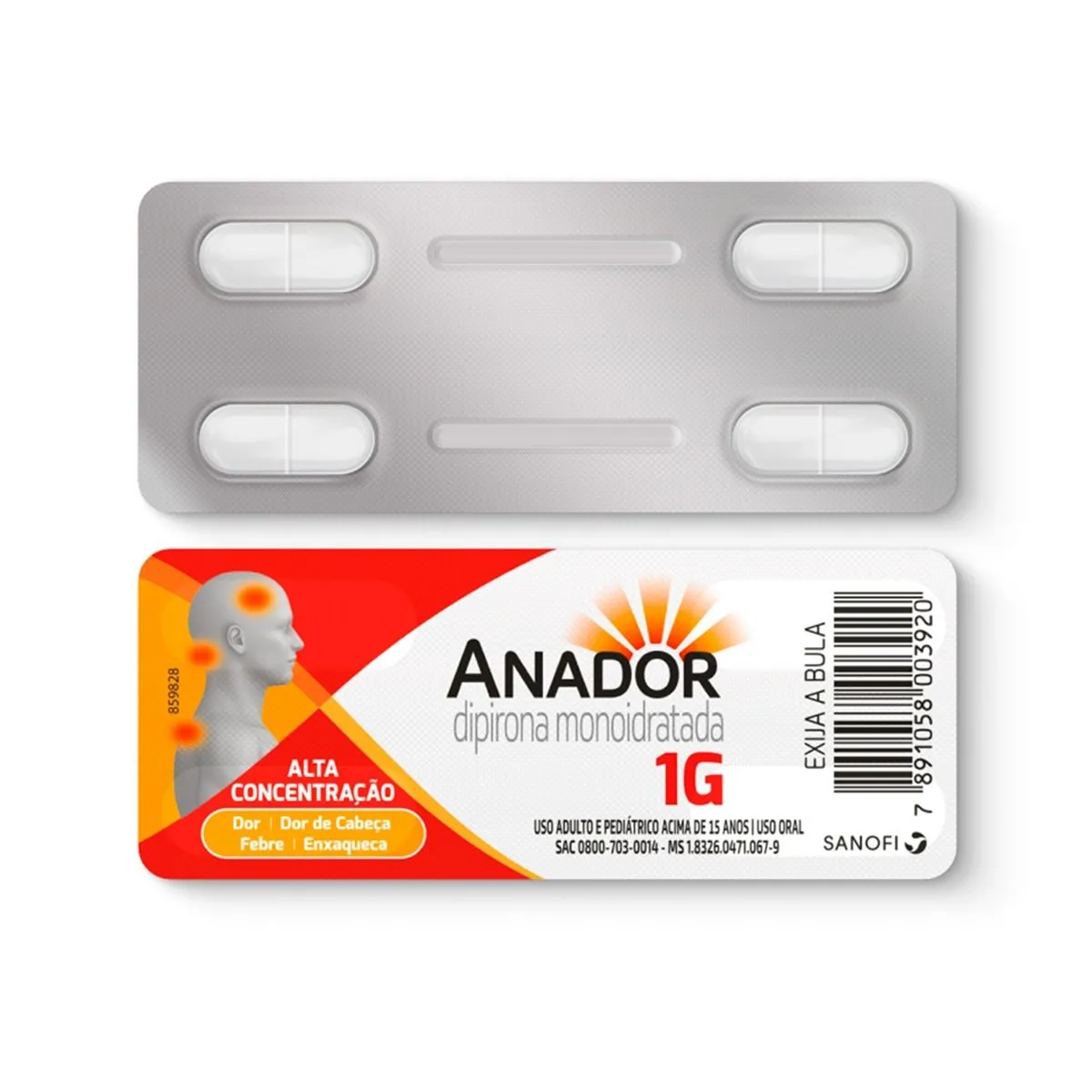 Promoção!Analgésico Anador 1g Com 04 Comprimidos