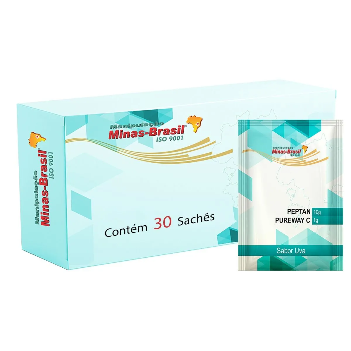Promoção!Suporte Imunológico e Articular Pureway C + Peptan 30 Sachês Uva