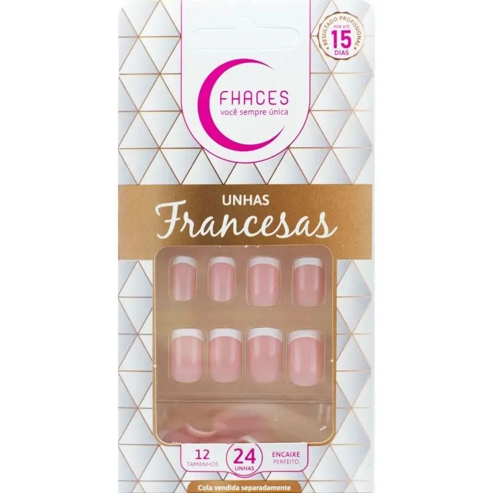 • Unhas Postiças Francesa Rosa 24 Unidades