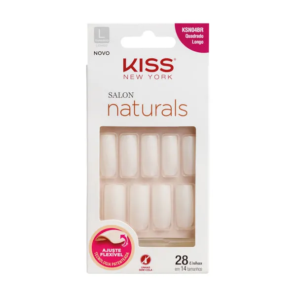 • Unhas Postiças Kiss New York Salon Natural Longo Quadrado 28 Unidades
