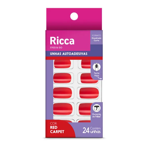 • Unhas Postiças Ricca 1845 Autoadesivas Vermelho