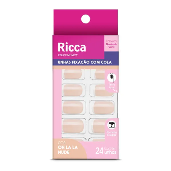 • Unhas Postiças Ricca Francecinha Nude 24 Unidades