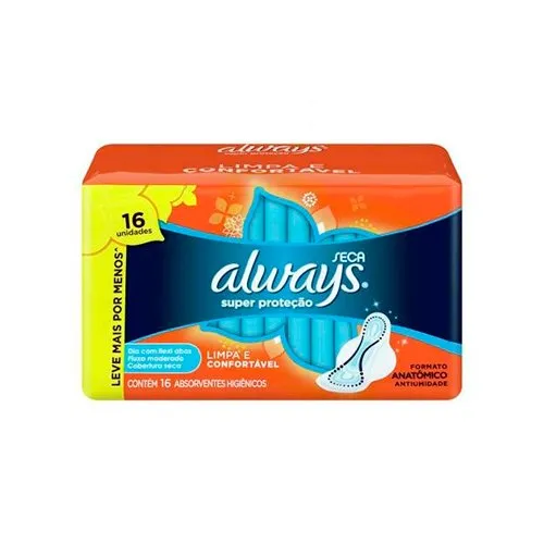 Absorvente Always Super Proteção Cobertura Seca com Abas com 16 unidades