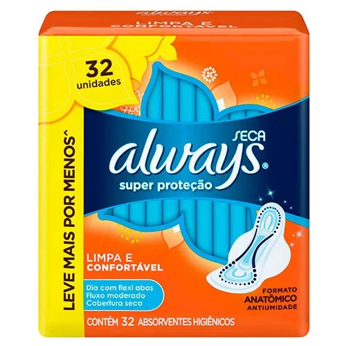 Absorvente Always Super Proteção Suave Com Abas 32 Unidades