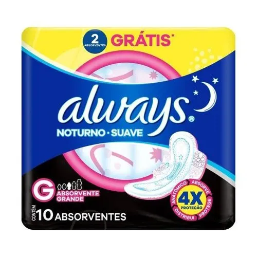 • Absorvente Always Noturno Suave Com Abas 10 Unidades