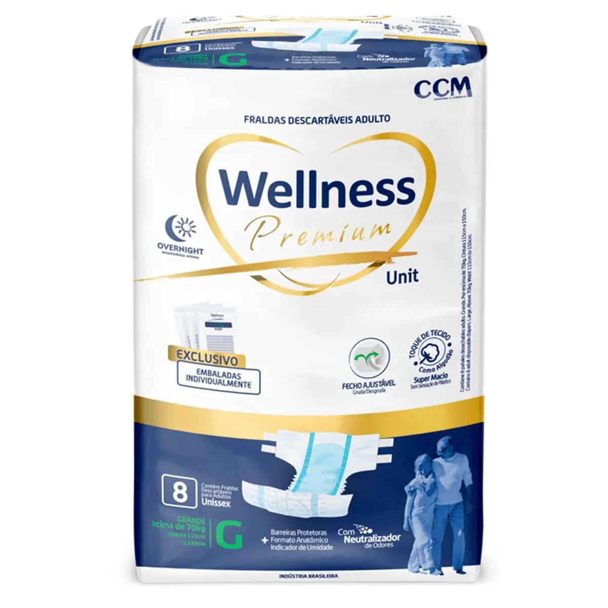 • Fralda Geriátrica Wellness Premium G Absorção Intensa 8 Unidades