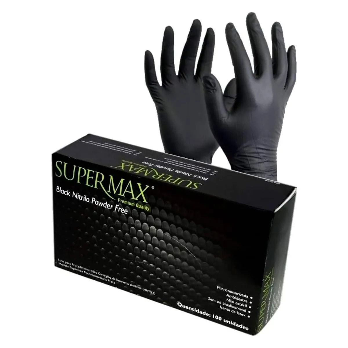 Promoção!Luva de Procedimento Nitrílica Preta Sem Pó Grande Com 100 Unidades Supermax
