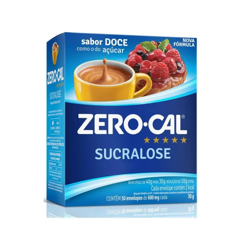 Promoção!Adoçante em Pó Zero-Cal Sucralose 1 Unidade com 50 Sachês de 600mg cada