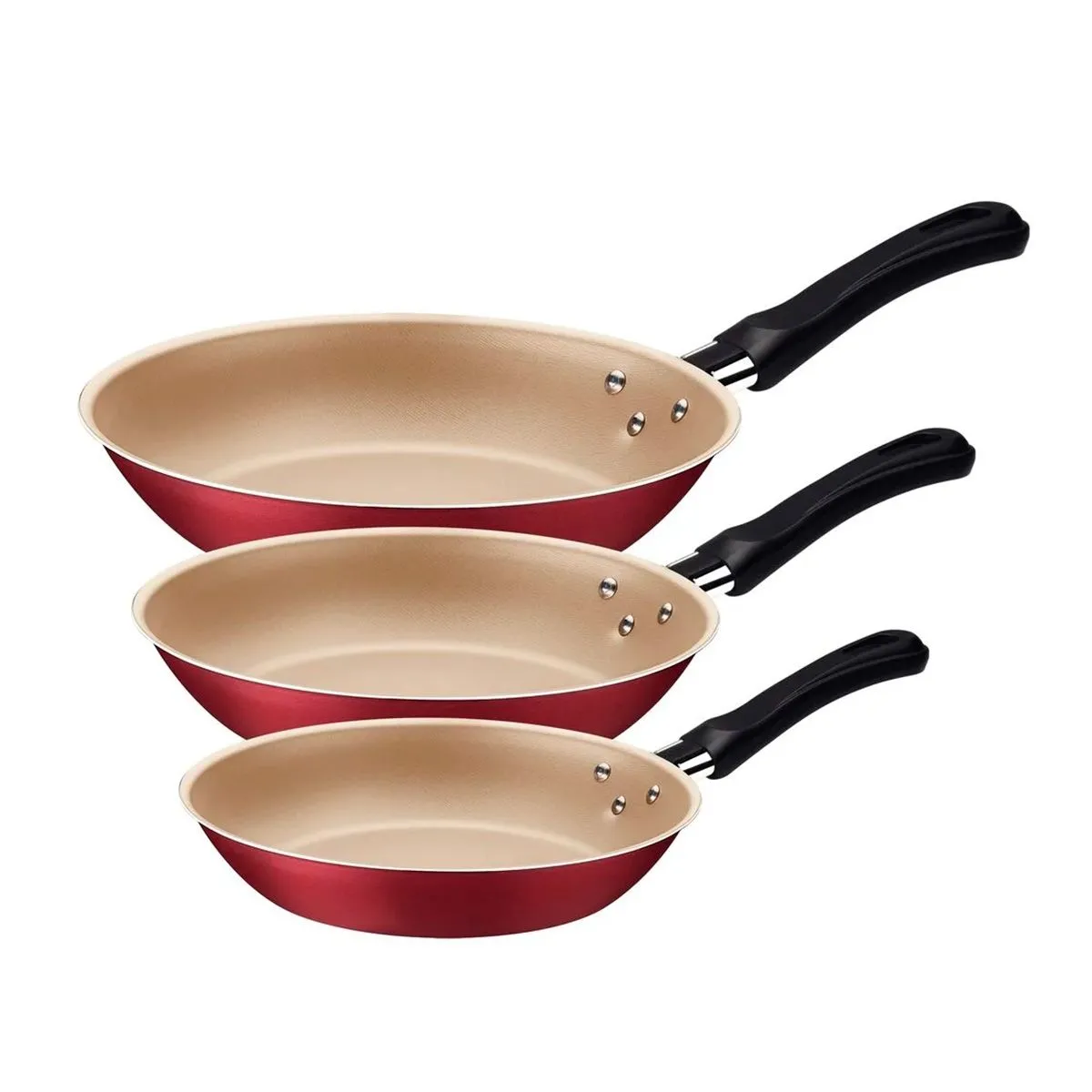 Promoção!Jogo de Frigideiras Caribe Alumínio com Revestimento Antiaderente Starflon Max Vermelha Com 03 Peças Tramontina