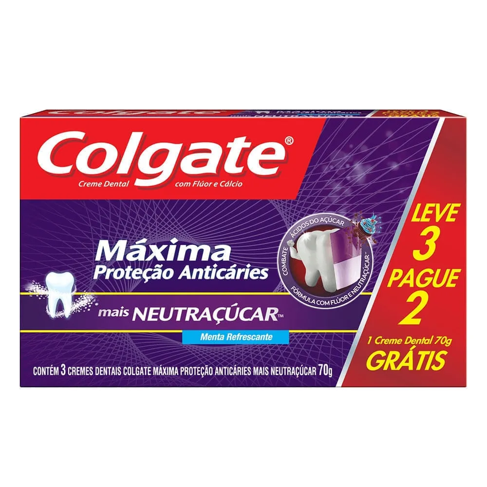 Promoção!Kit 3x70g Creme Dental Colgate Máx Proteção Anti Neutraçúcar