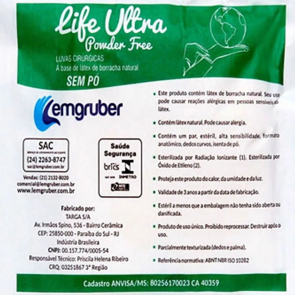 • Luva Cirúrgica Life Ultra Powder Free Estéril sem Pó 7.5 - par