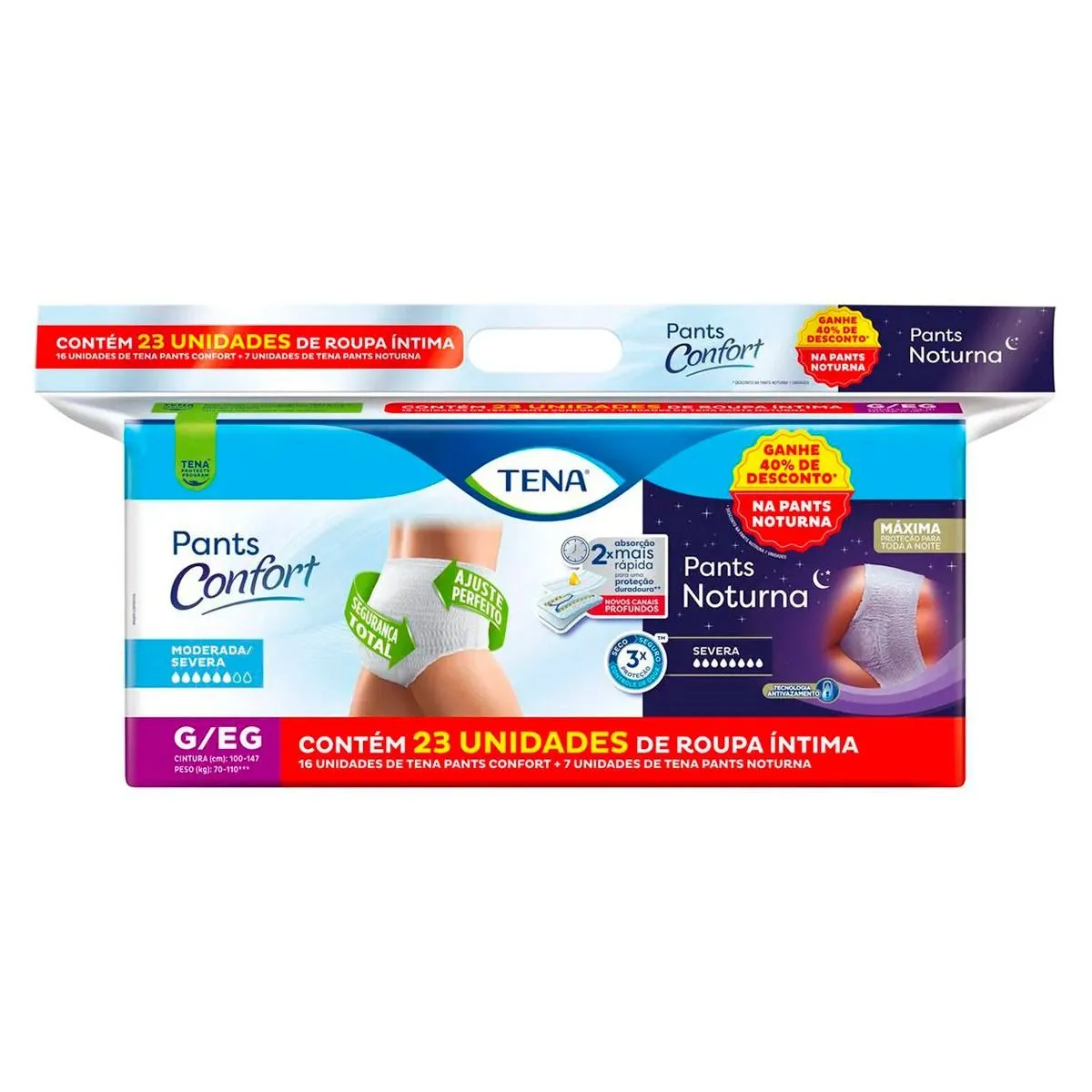 Promoção!Kit Roupa Íntima Descartável Pants Confort 16 Unidades + 7 Unidades Pants Noturna G / Eg Tena