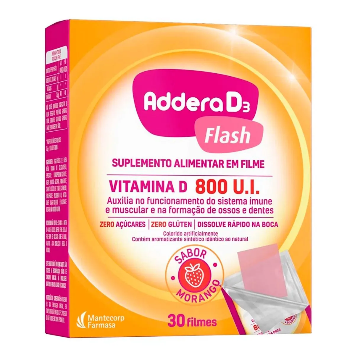 Addera D3 Flash 800ui Com 30 Filmes Sabor Morango