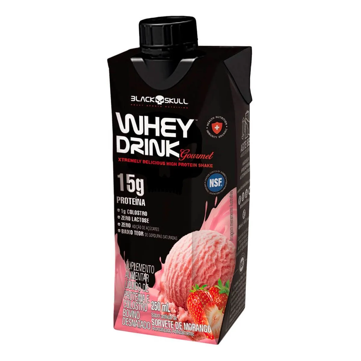 Whey Drink Gourmet Sabor Sorvete De Morango Com 250Ml Black Skull