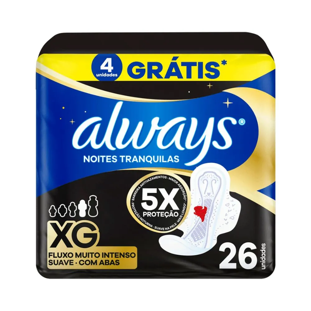Promoção!Absorventes Noites Tranquilas Suave XG 26 Unidades Always