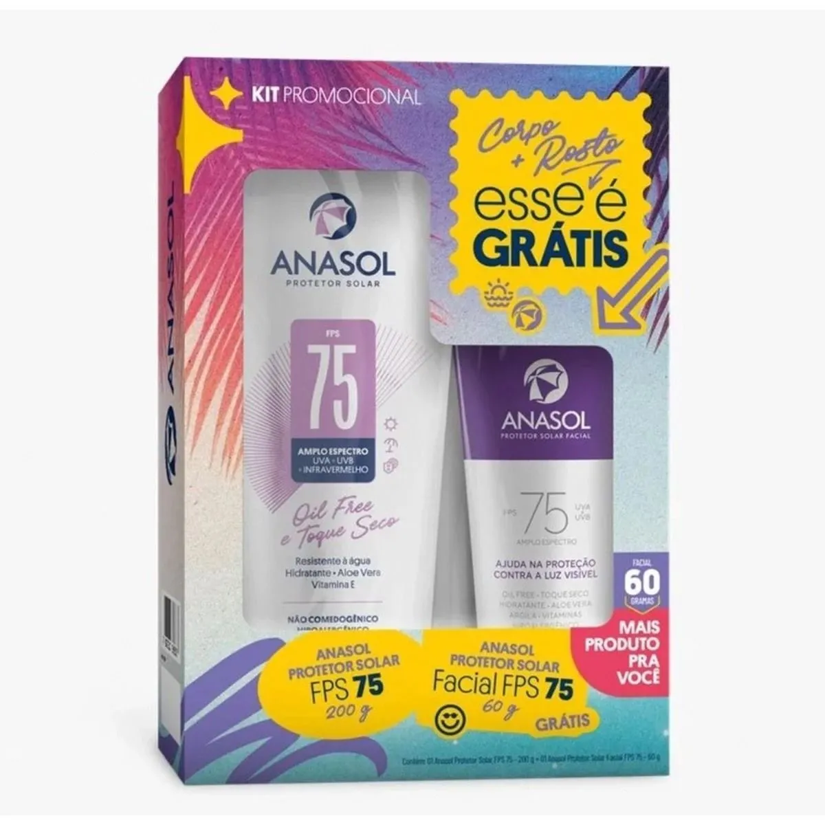Promoção!Kit Anasol Protetor Solar Corporal FPS75 200ml + Protetor Solar Facial FPS75 60g