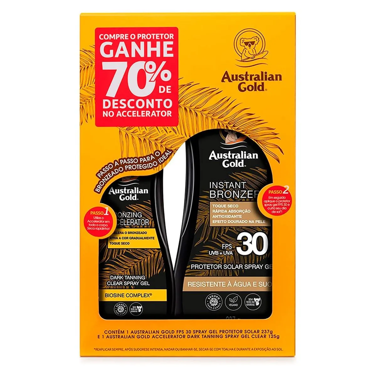 Promoção!Kit Australian Gold Protetor Solar Bronzer FPS30 275ml + Acelerador de Bronzeado 125ml