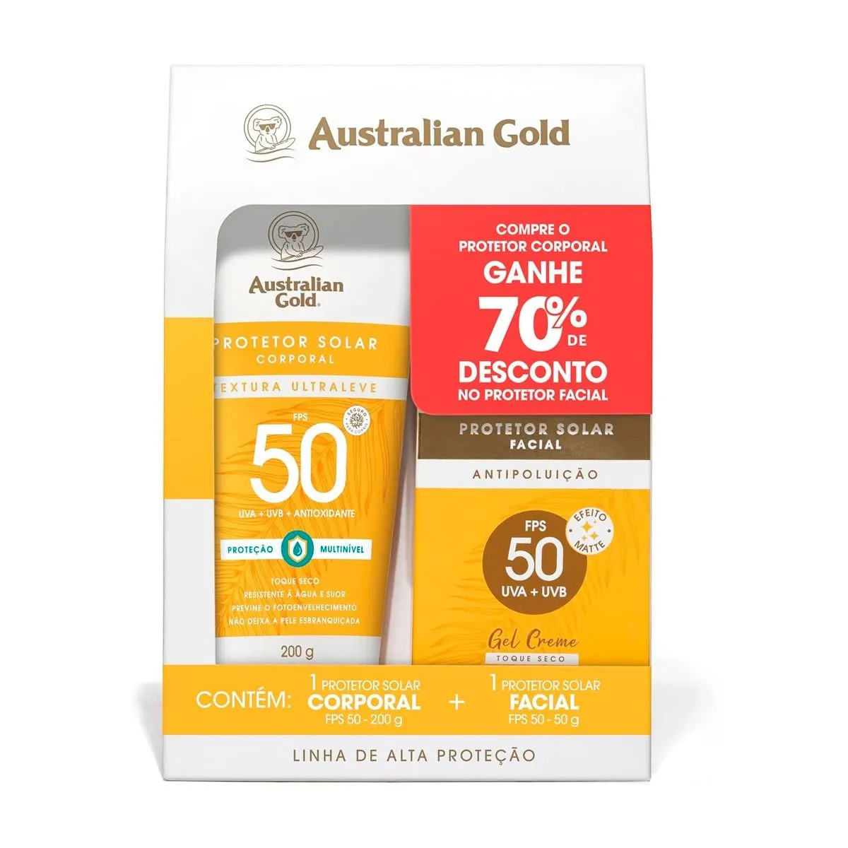 Promoção!Kit Protetor Solar Facial Fps50 50g + Protetor Solar Corporal Fps50 200g Australian Gold