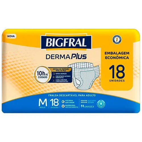 Fralda Descartável Geriátrica Adulto Bigfral Derma Plus Econômica Tamanho M 18 unidades