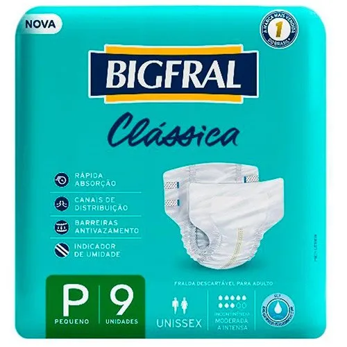 Fralda Descartável Geriátrica Adulto Bigfral Clássica Tamanho P 9 Unidades