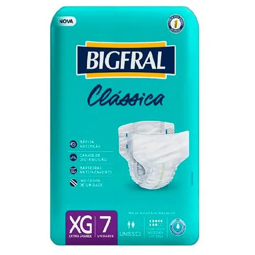 Fralda Descartável Geriátrica Adulto Bigfral Clássica Tamanho XG 7 Unidades