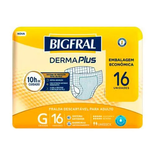Fralda Descartável Geriátrica Adulto Bigfral Derma Plus Econômica Tamanho G 16 unidades