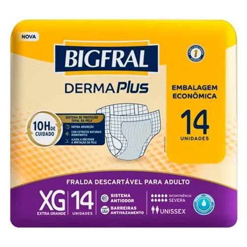 Fralda Descartável Geriátrica Adulto Bigfral Derma Plus Econômica Tamanho XG 14 unidades