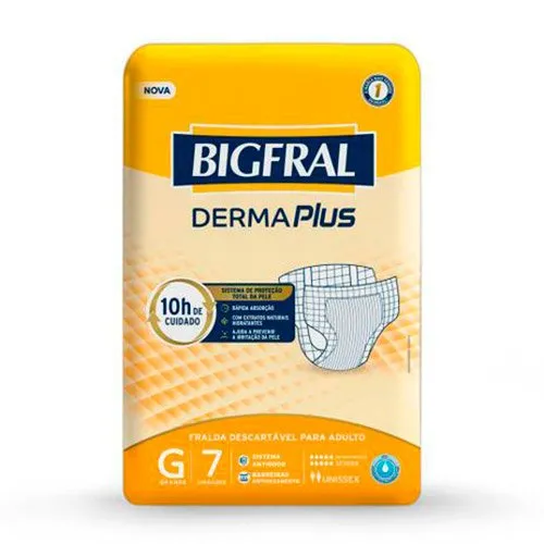 Fralda Descartável Geriátrica Adulto Bigfral Derma Plus Tamanho G 7 unidades