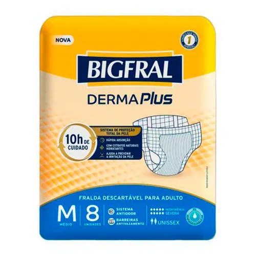 Fralda Descartável Geriátrica Adulto Bigfral Derma Plus Tamanho M 8 unidades