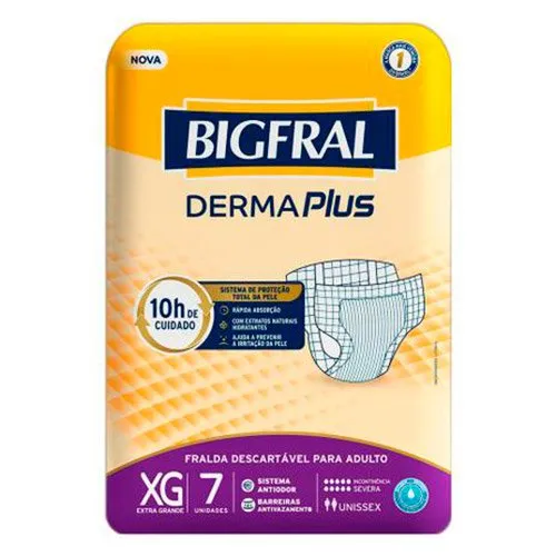 Fralda Descartável Geriátrica Adulto Bigfral Derma Plus Tamanho XG 7 unidades
