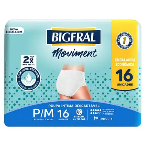 Promoção!Roupa Íntima Descartável Unissex Bigfral Moviment Tamanho P / M 16 unidades