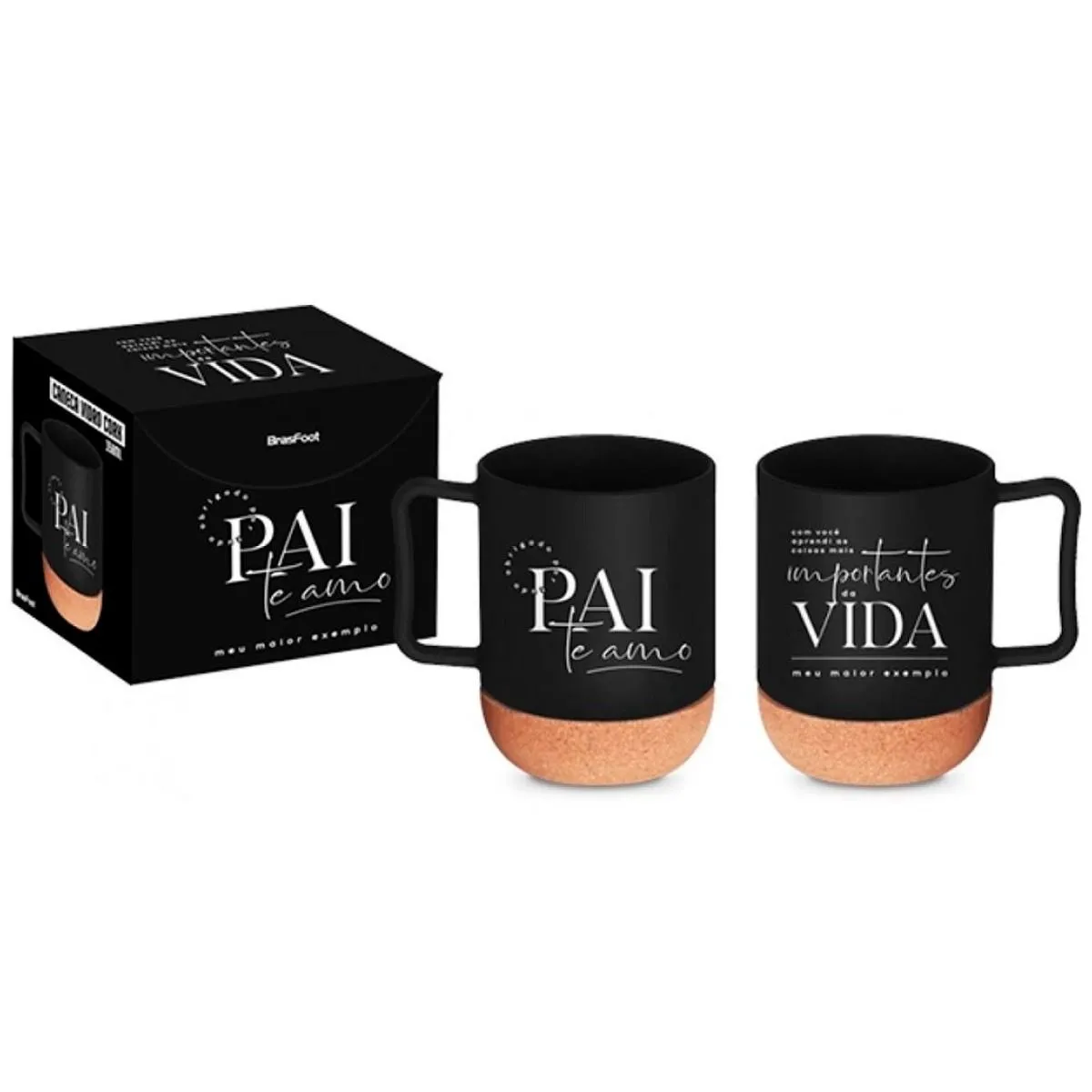 Promoção!Caneca De Vidro Cork 350ml Pai Te amo Meu Maior Exemplo Acompanha Porta Copo Brasfoot