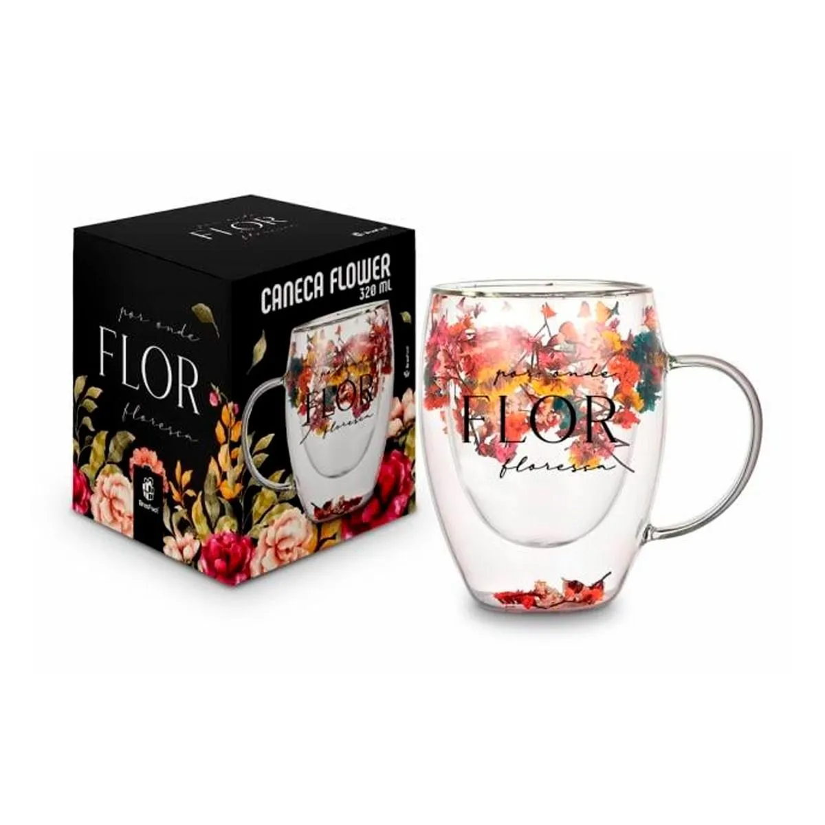 • Caneca De Vidro Flower Por Onde Flor Floresça 320ml Brasfoot