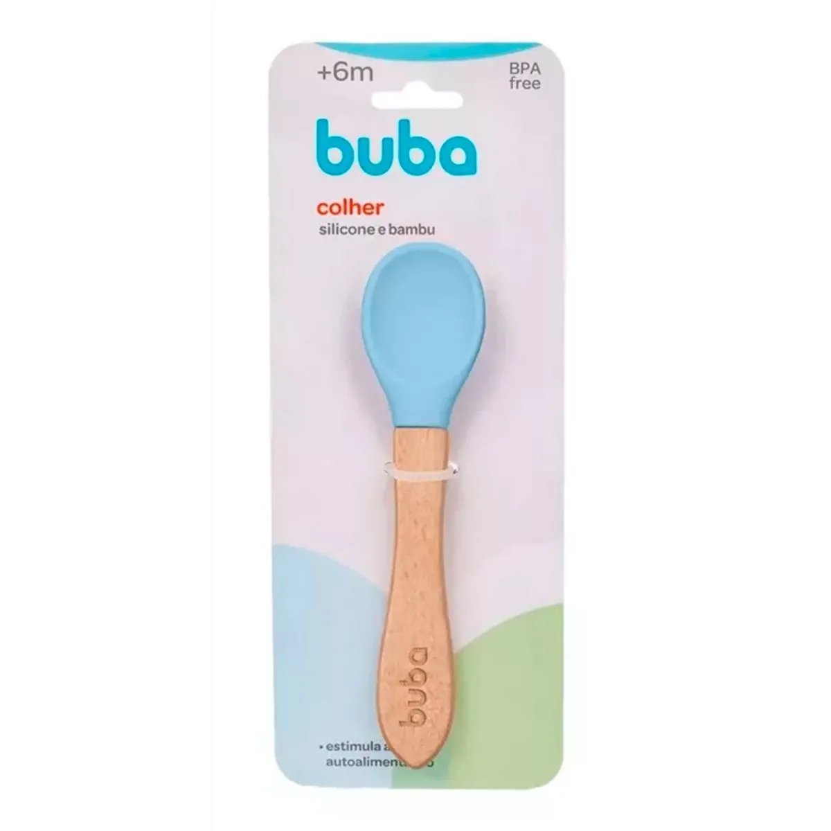 Colher Infantil Silicone e Bambu Azul Ref:15822 Buba