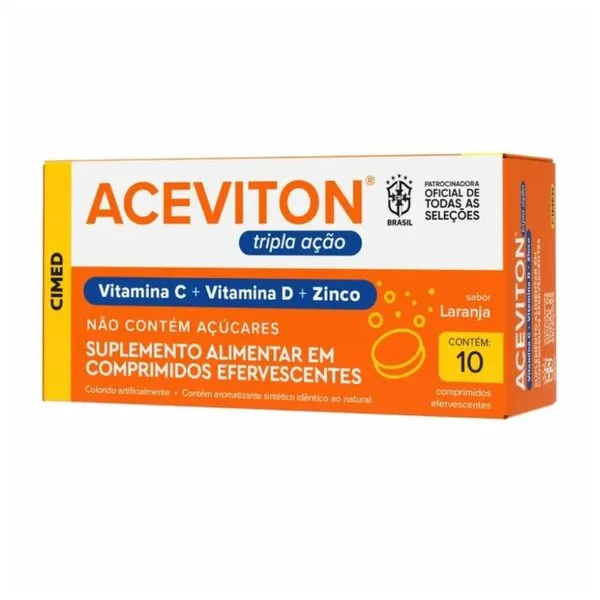 • Vitamina C Efervescente Aceviton Tripla Ação Laranja 10 comprimidos Cimed