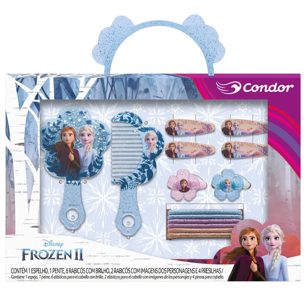 Promoção!Kit Condor Frozen II (Espelho, Pente, 8 Elásticos, 4 Presilhas)