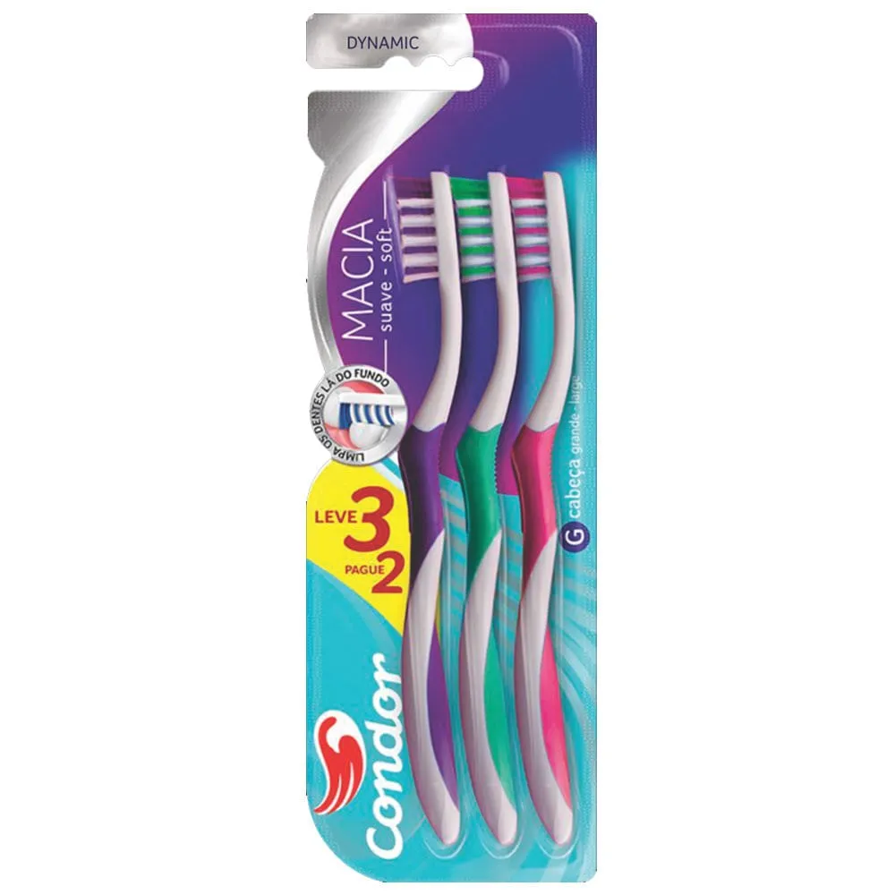 Promoção!Kit 3 Escovas Dentais Condor Dynamic Macia