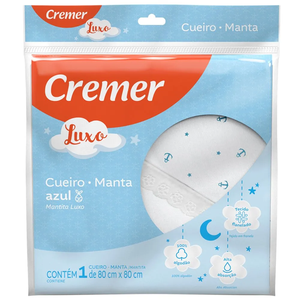 Cueiro Manta Luxo Cremer 80x80cm Azul 1 Unidade