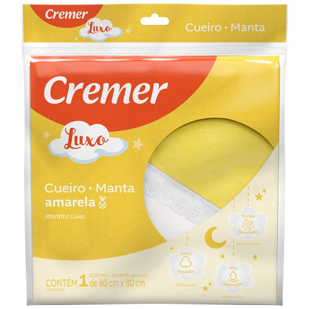 • Cueiro Manta Luxo Cremer 80x80cm Amarelo 1 Unidade
