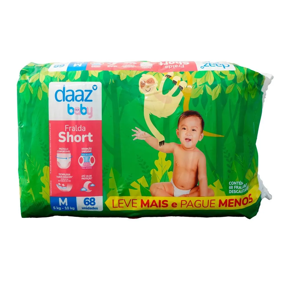 Promoção!Fralda Short Daaz Baby Pants Hiper Tamanho M 68 Unidades