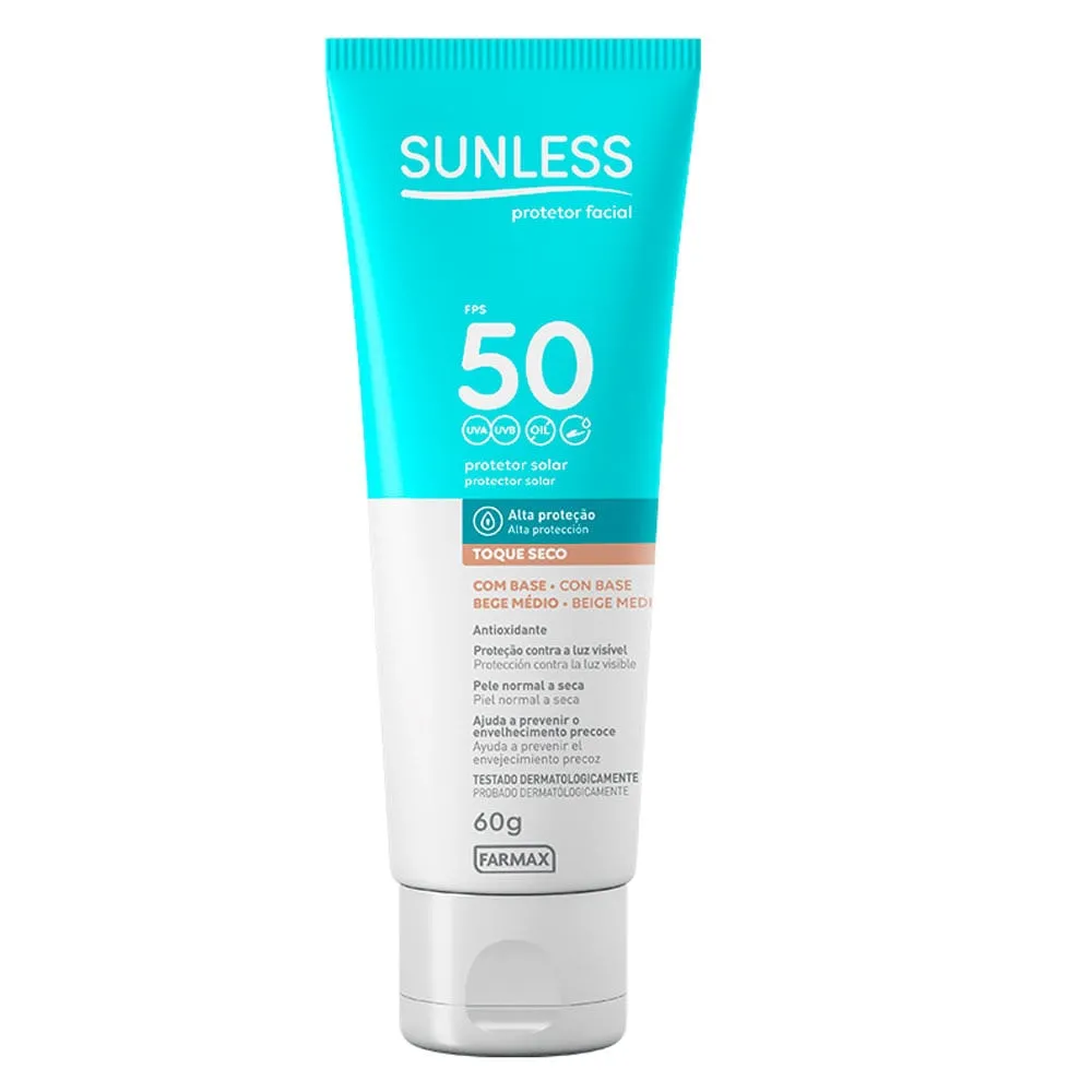 Protetor Solar Sunless Facial Toque Seco Bege Médio FPS50 60g