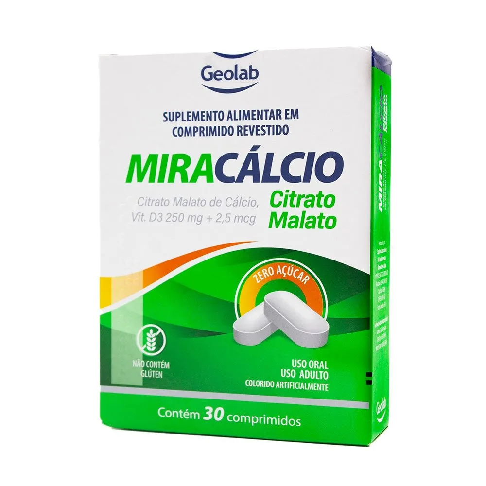 • Miracálcio Citrato Malato 250mg+ 2,5mcg 30 Comprimidos Geolab