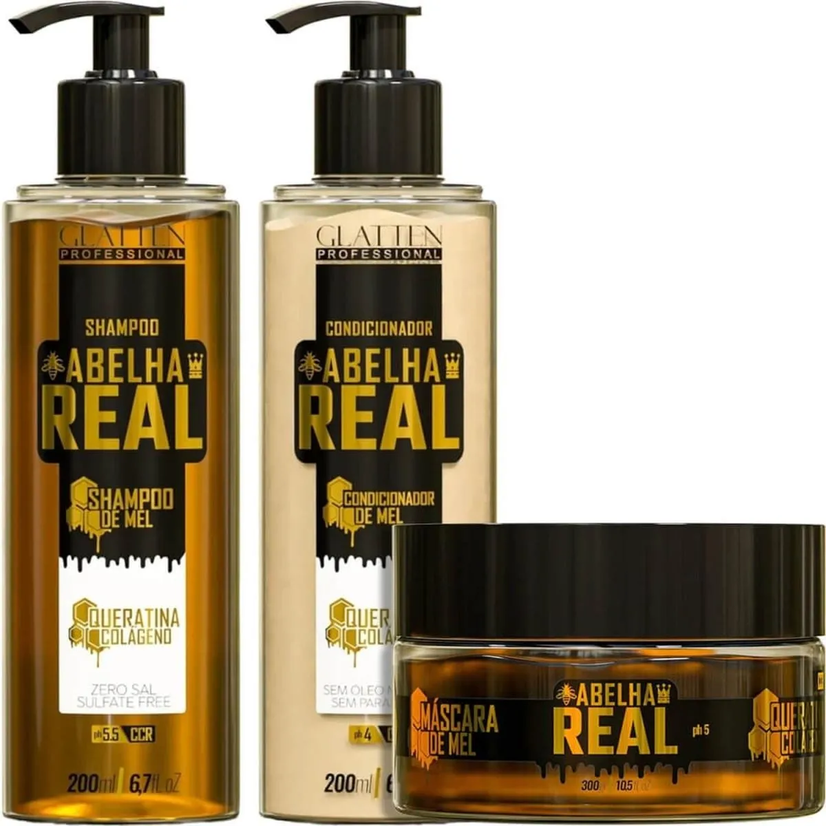 Promoção!Glatten Abelha Real – Kit de Mel Queratina e Colágeno Trio (3 Produtos)