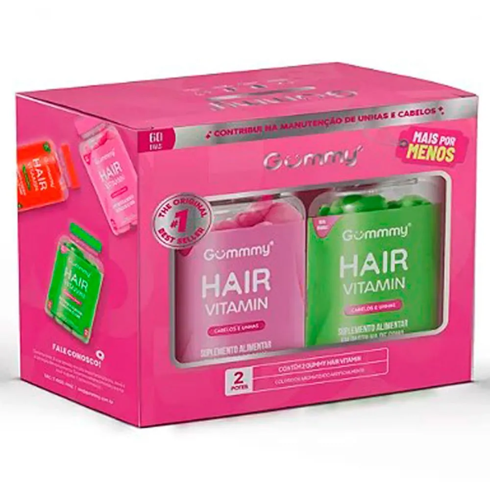 Promoção!Kit Suplemento Alimentar Gummy Hair Cabelos e Unhas Maça Verde + Tutti Frutti 60 Gomas 180g