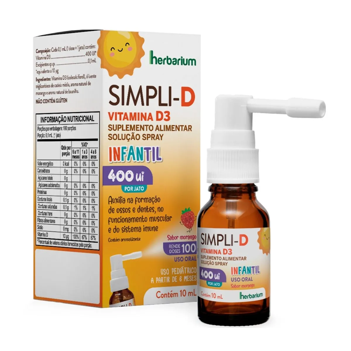 Promoção!Simpli-D Solução Spray Infantil 400ui Morango Com 10ml Herbarium