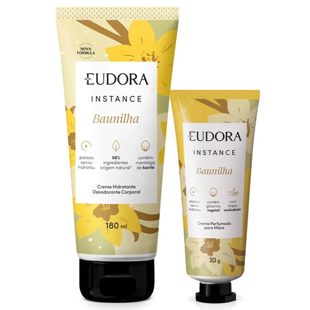 Creme Hidratante Desodorante Corporal 180ml e Creme Para Mãos 30g Eudora Instance Baunilha