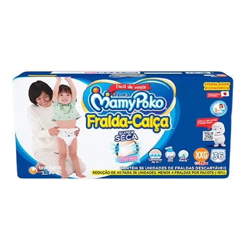 • Fralda MamyPoko Calça Hiper Super Seca Tamanho XXG 36 Unidades