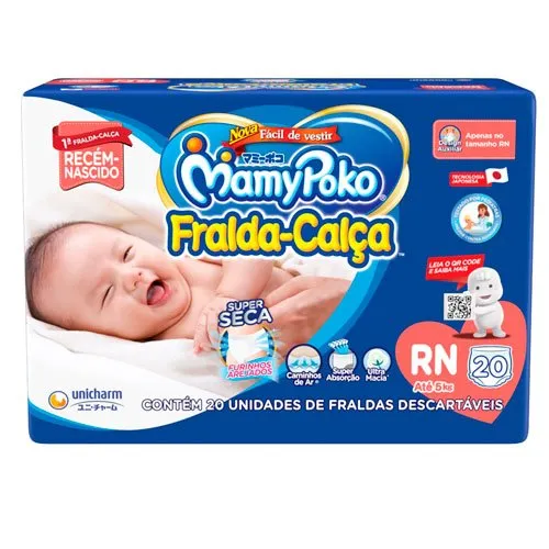 • Fralda Infantil MamyPoko Calça Regular Tamanho RN 20 Unidades