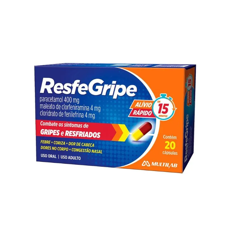 • Resfegripe 400mg + 4mg + 4mg, blíster com 20 cápsulas Multilab