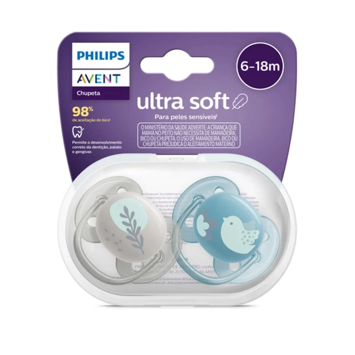 • Chupeta Avent Ultra Soft Dupla/Decorada 6-18M Azul/Cinza - Philips